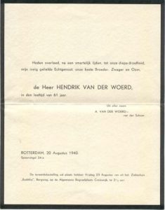 | Begraven: | 23 augustus 1940 (Rotterdam, Algemene begraafplaats Crooswijk te 14.30 uur, uit het ziekenhuis Eudokia, Bergweg, Rotterdam.) |